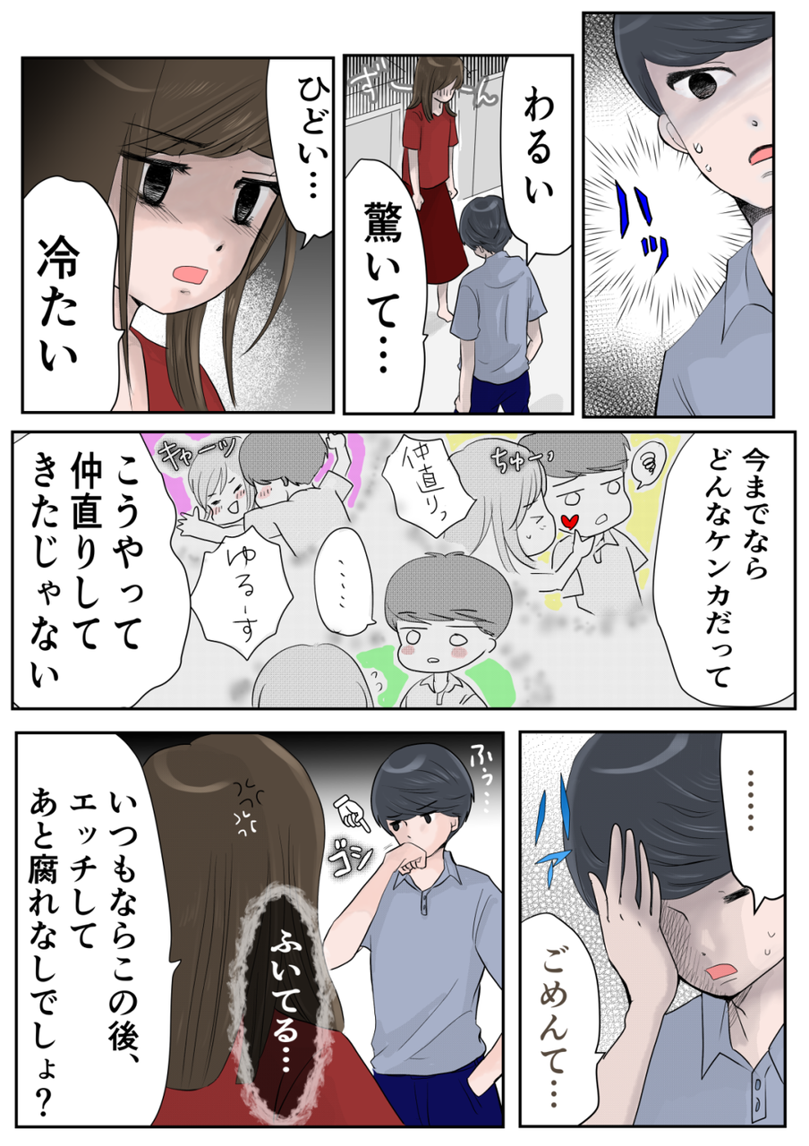 まぁ、空気も読まずにキスする私も悪かったのかもですが、その後、明らかに態度がいつもとちがいました。「ざくろとは別れるんだ!」という、もだ氏の本気を感じました。私は仲直りをしたかったんです。昔に戻りたかった。どうにかして以前のように関係を立て直したかった…必死だったんです💀